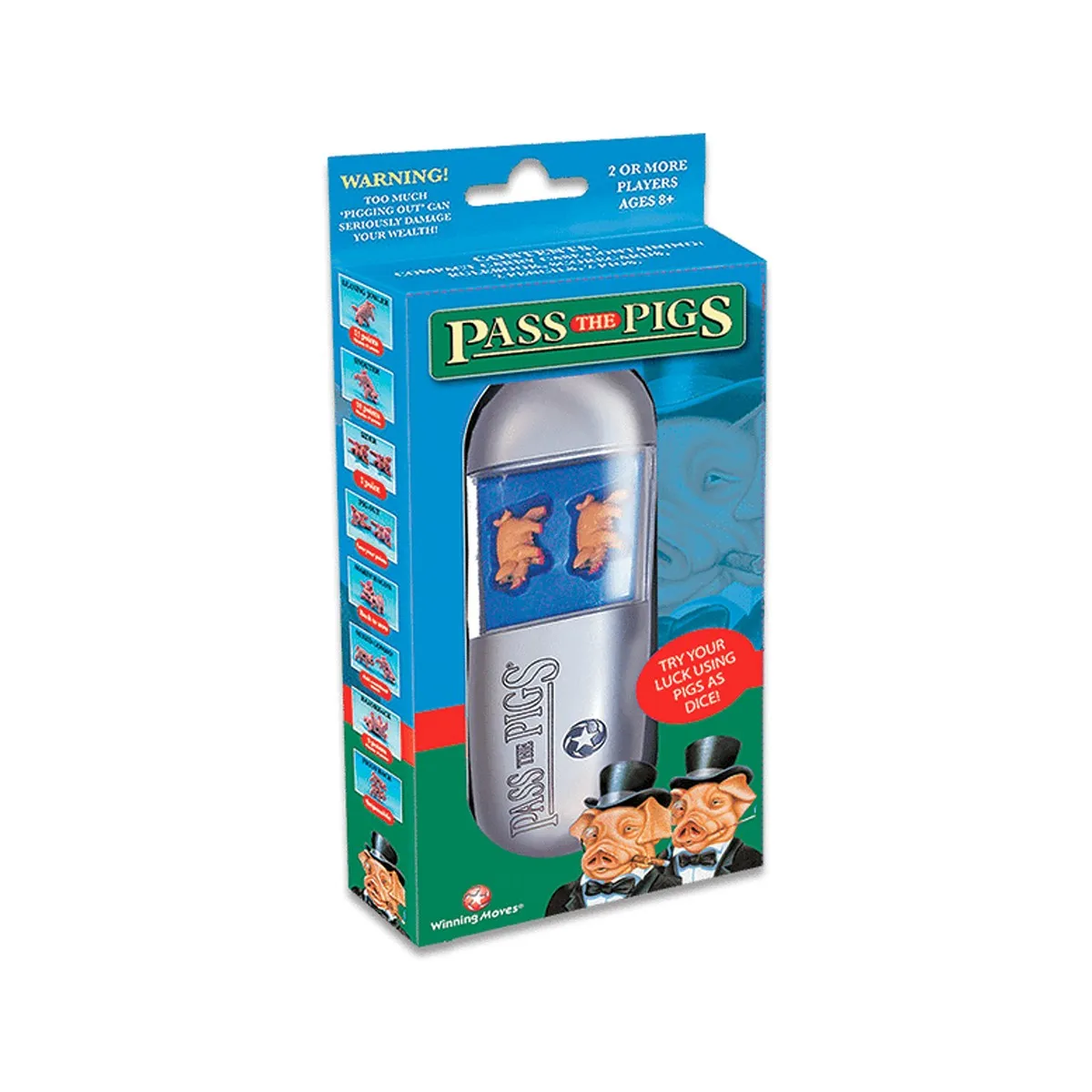A classic game for generations and probably the best dice game ever! These pigs are truly addictive! Pass the Pigs is a version of the dice game ‘Pig’ whereby each turn involves one player throwing two model pigs, depending on how the pigs land, points are scored or deducted. Warning! Too much ‘Pigging Out’ can seriously damage your wealth!