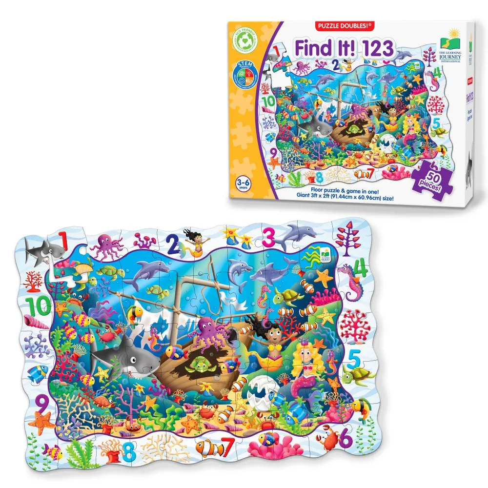 Enjoy two fun-filled playtime activities in one! Find It! 123 combines a puzzle and a game into a highly educational and interactive learning experience. The puzzle picture is full of bright, colourful details and a fun scene to encourage the child to discuss the pictures. First, assemble the puzzle, then play the game by finding the images on the puzzle border within the puzzle scene.