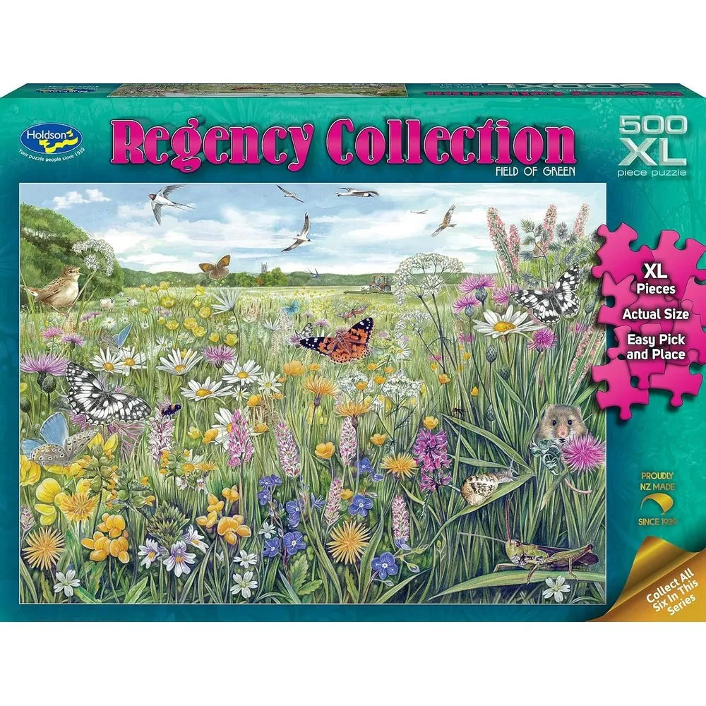 There are 6 gorgeous scenes to choose from (each sold separately) in this 500 extra-large piece jigsaw puzzle series, or collect them all: All Aboard, Cottage Countryside, Field of Green, Heading Home From The Field, Protect and Serve, Repairing the Nets.