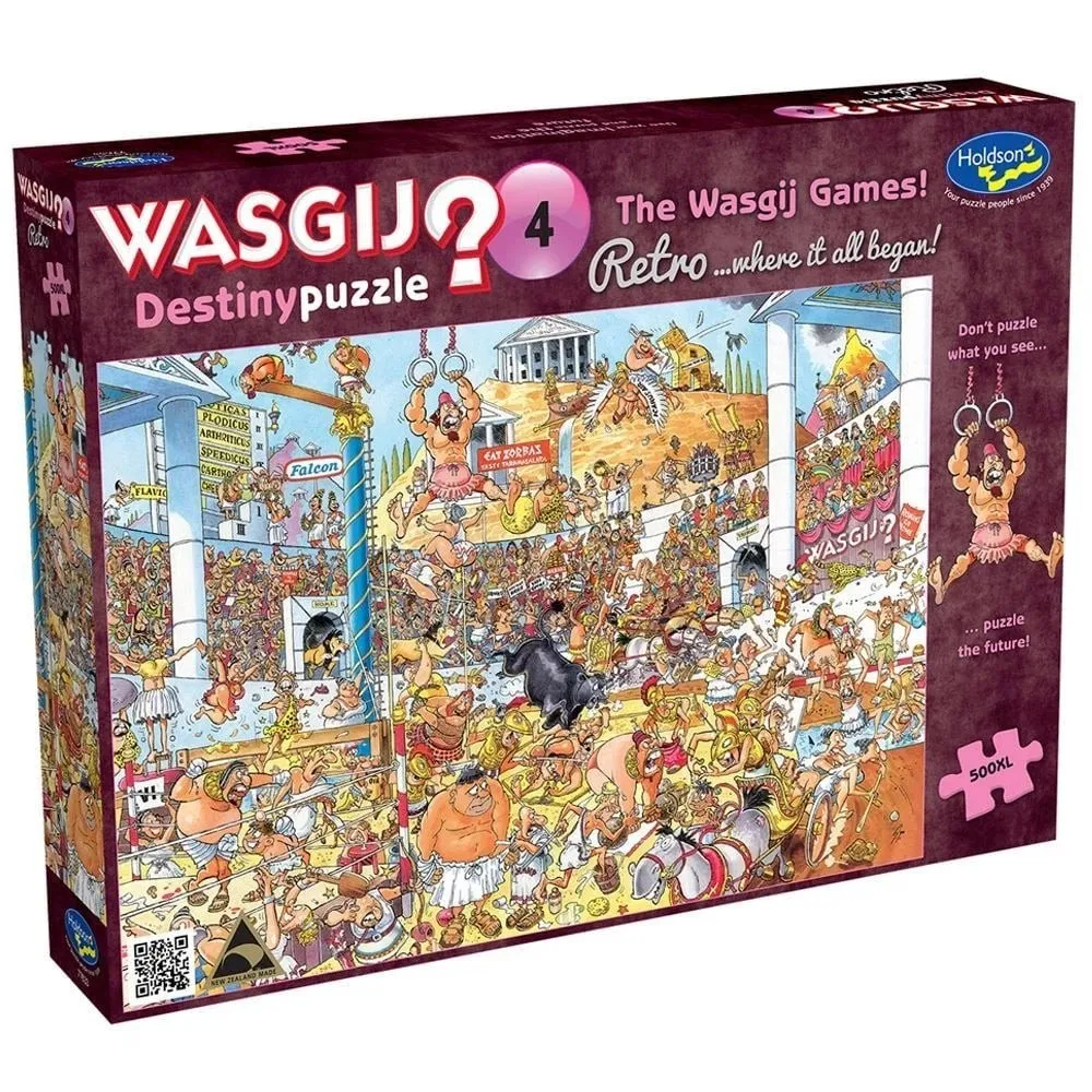 Wasgij Retro Destiny 4:n'the Wasgij Game?" is the title of this brilliantly clever Wasgij Destiny 500 XL piece jigsaw puzzle. The scene finds the Colosseum sold out: fans from across the globe have gathered to witness sporting history in the making as athletes compete to win gold in the Wasgij Games. But how different would the Wasgij Games look today? Will there still be the blood, sweat, and tears these games were renowned for, or will the modern era be easier on the eye? This is the scene you will have to puzzle.