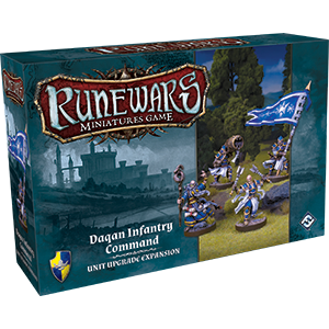 With polished armor glinting in the sunlight, the armies of the twelve baronies and the Free Cities are a stirring sight. Master wizards from the circles at Greyhaven and Nerekhall bolster their ranks, wielding destructive power and an arsenal of runebound shards to devastate their foes. Battle standards with histories as long as the Baronies of Daqan swirl in the wind, while the roar of lion horns stiffens the backs of wavering soldiers. Every company is led by a champion, one who has faced death time and again, yet has survived and now invites others to draw strength from his own stolid bravery. The Daqan Infantry Command Unit Upgrade Expansion introduces four brand-new figures to the armies of the Daqan Lords—a Banner Guard, a Wizard, a Champion, and a Cornicen. Alongside these figures, you’ll find eighteen new upgrade cards, many of which include ways to bring these new figures into your armies. For instance, you may choose to support one of your units with the Lance Corporal upgrade card, implanting the Champion figure into the ranks of your unit. As long as the Champion figure is alive, you gain the benefit of the Lance Corporal card, which significantly boosts your tactical flexibility!