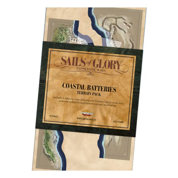 Sails of Glory - Coastal Batteries is an expansion for Sails of Glory, including 6 different, modular coastal batteries elements and 5 battery logs, to create hundreds of different scenarios and to expand your naval battles with the presence of coastal batteries.