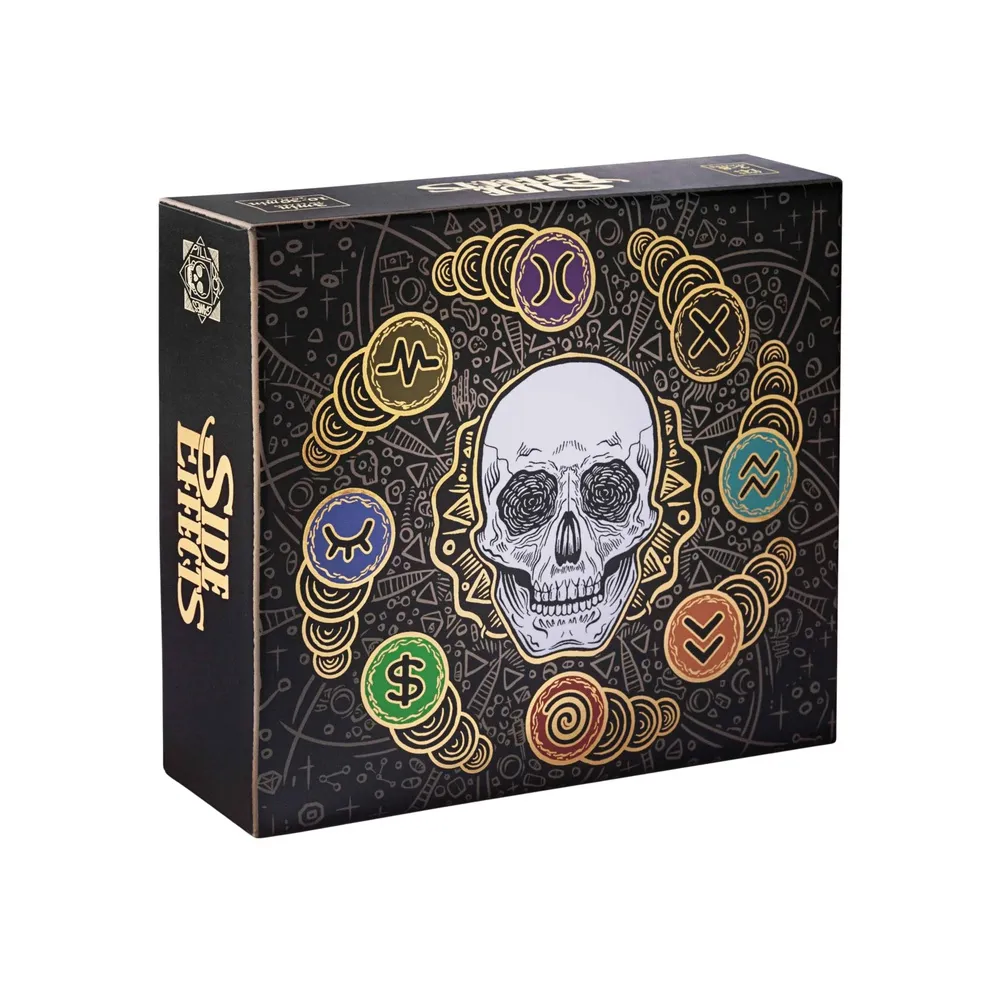 Drug use, personal demons, wild episodes, and more. Side Effects is a "take that" card game where players race to treat all the diseases in their psyche with medication and therapy.