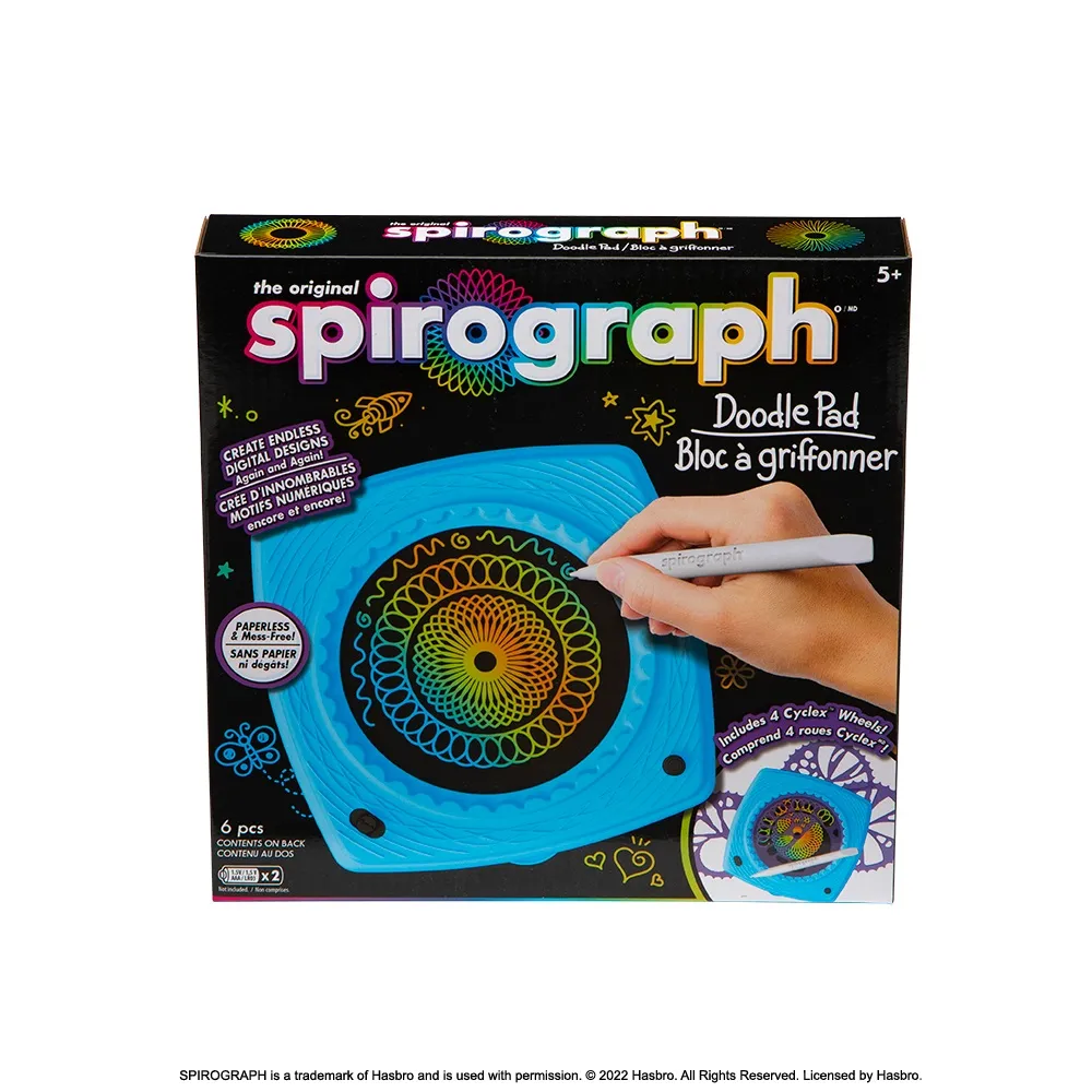 Create endless Spirograph® designs on the LCD screen using wheels! Draw easily on the go or at home, then save and display your colorful artwork. Reset your screen with the push of a button to keep on creating new designs! No paper, no markers, no mess!
