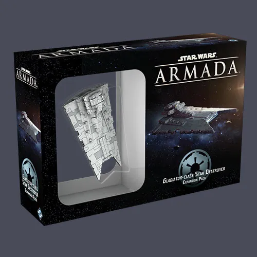 Originally designed as an escort for larger Star Destroyers, the smaller Gladiator-class Star Destroyer measures roughly five-hundred meters and proved most effective as a long-range patrol ship deployed to the fringes of the galaxy. There, its brutal armament of turbolasers, concussion missiles, laser cannons, and TIE squadrons allowed it to quickly subjugate any local opposition to the Galactic Empire. The Gladiator-class Star Destroyer Expansion Pack for Star Wars: Armada introduces one detailed and pre-painted miniature that the expansion’s two ship cards allow you to add to your fleet as either a Gladiator I or Gladiator II. You’ll also find all the command dials and tokens that you need to bring your Star Destroyer to battle, along with ten upgrade cards that can enhance its attacks, allow it to move between attacks, and improve its accuracy. This is not a complete game experience. A copy of the Star Wars: Armada Core Set is required to play.
