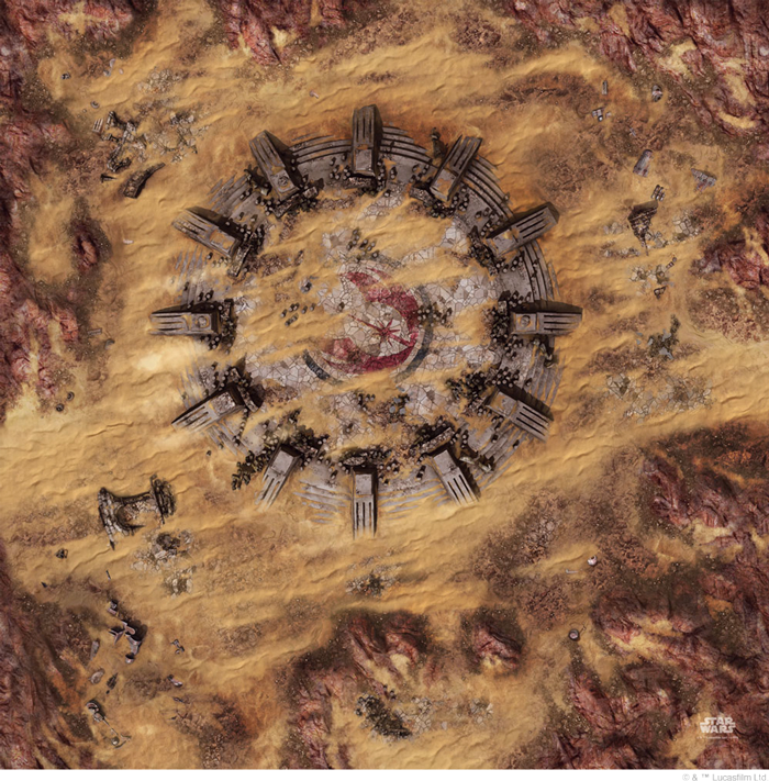 Upgrade your Star Wars™: Legion play area with the Desert Ruins Gamemat, an approximately 3’ x 3’ rubber mat with a slip-resistant bottom. This mat is the ideal companion to the Desert Junkyard Gamemat and the two products combine to make a 3’ x 6’ play area perfect for standard-sized games.
