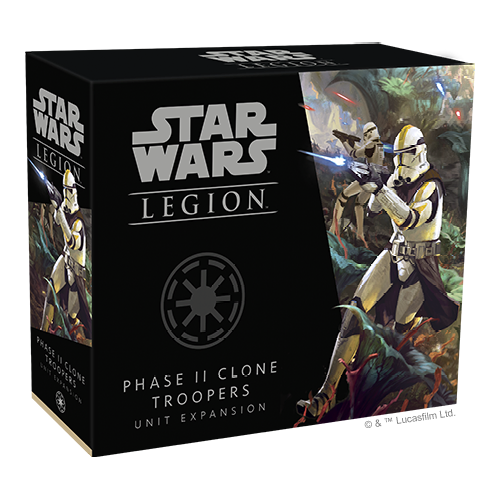 Phase II clone trooper armor reflected one of the Republic's greatest technological successes and included advanced tactical gear that further augmented the clone troopers' individual strengths. Additionally, the clones wearing this armor were themselves better trained and more experienced than those first deployed at the start of the war. Within the Phase II Clone Troopers Unit Expansion, you'll find everything you need to deploy an elite corps unit of Phase II Clone Troopers, including seven Phase II Clone Trooper miniatures featuring a variety of customization options. First, the unit's leader can be assembled with or without his helmet. Similarly, a Z-6 Phase II Trooper can be built with or without his helmet or, if you choose, he can carry his signature Z-6 Rotary Blaster or the standard DC-15A Blaster Rifle. Finally, a Phase II Mortar Trooper can lug his mortar into battle stowed on his back or appear with the mortar fully deployed. Dispatch an elite corp unit of Phase II Clone Troopers to the battles of the Clone Wars with seven new miniatures to add to your Star Wars: Legion collection! Four unpainted, uniquely-sculpted Phase II Clone Trooper miniatures and a Phase II Clone Trooper unit leader miniature appear with their standard issue DC-15A blaster rifles. A Z-6 Phase II Trooper and a Phase II Mortar Trooper add extra firepower and customization options to your unit.