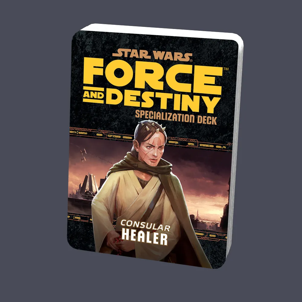 Curse the wounded and sick with the Healer Specialization Deck for the Star Wars®: Force and Destiny™ roleplaying game. Available through our in-house manufacturing division, The Factory, each Force and Destiny Specialization Deck includes twenty talent cards for a single specialization. Thematic art on every card helps immerse you more fully in the Star Wars universe. With these cards players and GMs can easily comprehend the magnificent powers that players possess and stay focused on the path towards destiny. Healers enhance their extensive medical knowledge with the power of the Force. Their approach towards medicine is not merely physical, but holistic, addressing wounds of the spirit, and even community, as well. The Healer Specialization Deck contains: • 2 cover cards (including a reference guide for each deck) • 20 standard sized talent cards
