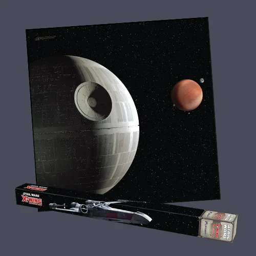 Take your battles to the stars with X-Wing Playmats, available via Fantasy Flight Games’ In-House Manufacturing! Each X-Wing Playmat takes the form of an easily portable, 3’ by 3’ neoprene playmat, complete with a slip-resistant bottom that helps to ensure your valuable miniatures stay safe during your space battles. Whether you field a squadron for the Rebel Alliance, the Imperial Navy, or the Scum and Villainy of the galaxy, you’ll find a cinematic setting for your ship-to-ship battles in the X-Wing Playmats. The Death Star Assault Playmat takes your dogfight straight to the climax of Star Wars: A New Hope. You can reenact the Alliance’s desperate trench run, or tell your own stories set against the backdrop of the Empire’s ultimate weapon. Whether you seek to break the Empire’s power, or establish dominion over the galaxy, this playmat will serve you wel