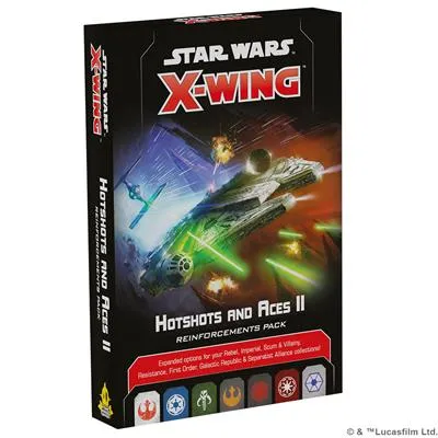 New pilots launch into Star Wars: X-Wing in this new pack! The Hotshots and Aces II pack gives players even more options for their squadrons of every faction with 35 new ship cards for a wide variety of ships. Among them, players will find a number of iconic pilots with all new ways to benefit their squadrons, including Tycho Celchu, Kit Fisto, Aurra Sing, Poe Dameron, Hondo Ohnaka, and Doctor Aphra.
