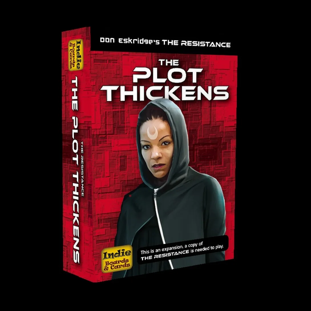 The Resistance: The Plot Thickens includes the Plot Cards module from the second edition of The Resistance, plus the Rogue, and Sergeant modules originally released as promos. It also includes a full set of replacement Character and Mission cards and new Mission tracking tokens.