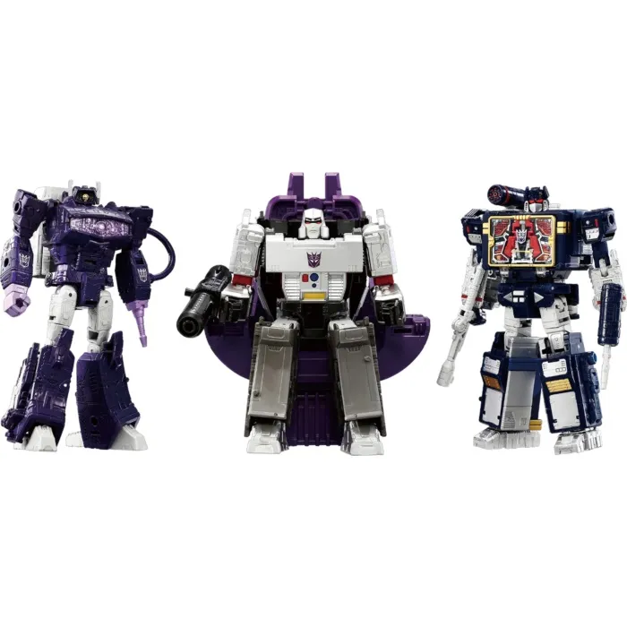 The Dramatic Capture Series celebrates 40 years of the Transformers brand with G1-inspired figures showcased in premium deco and details. This set comes with Megatron, Shockwave, Soundwave, and Laserbeak action figures, and also includes a Captain’s chair and series-inspired weapon accessories. These adult collectible Transformers action figures for adults feature authentic Takara Tomy design and deco.