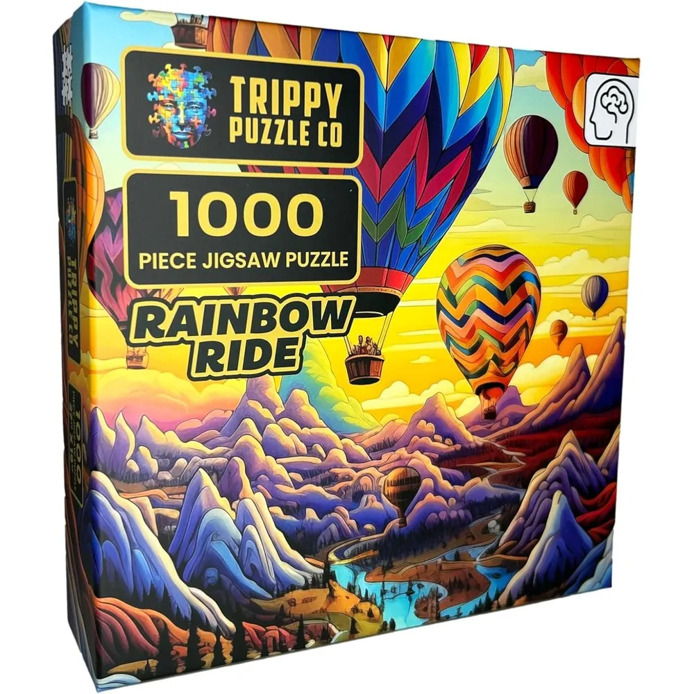 Rainbow Ride Piece Together a Trippy Adventure with the Rainbow Ride 1000-piece jigsaw puzzle is perfect for anyone who loves colorful, dreamy artwork and puzzles. Whether for yourself or as a gift, this puzzle promises an engaging and creative journey.