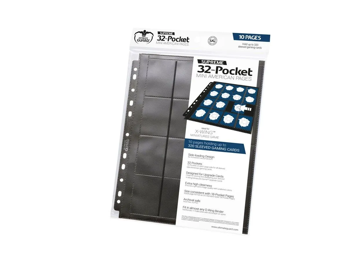 Side-loading Pocket Pages with extra clear, acid-free polypropylene for all sleeved Mini American-sized gaming cards. Optimized for sleeved cards 32 sleeved cards per page Side-loading pocket Design Prevents your cards from falling out of your binder when carrying it around Durable Polypropylene material The high quality material keeps your pages durable and strong, even after many uses Secure hold in the album Binder Reinforced 11-holes area with extra layer on spine Extra high clearness Ensures a genuine image quality with unaltered contrast and colors