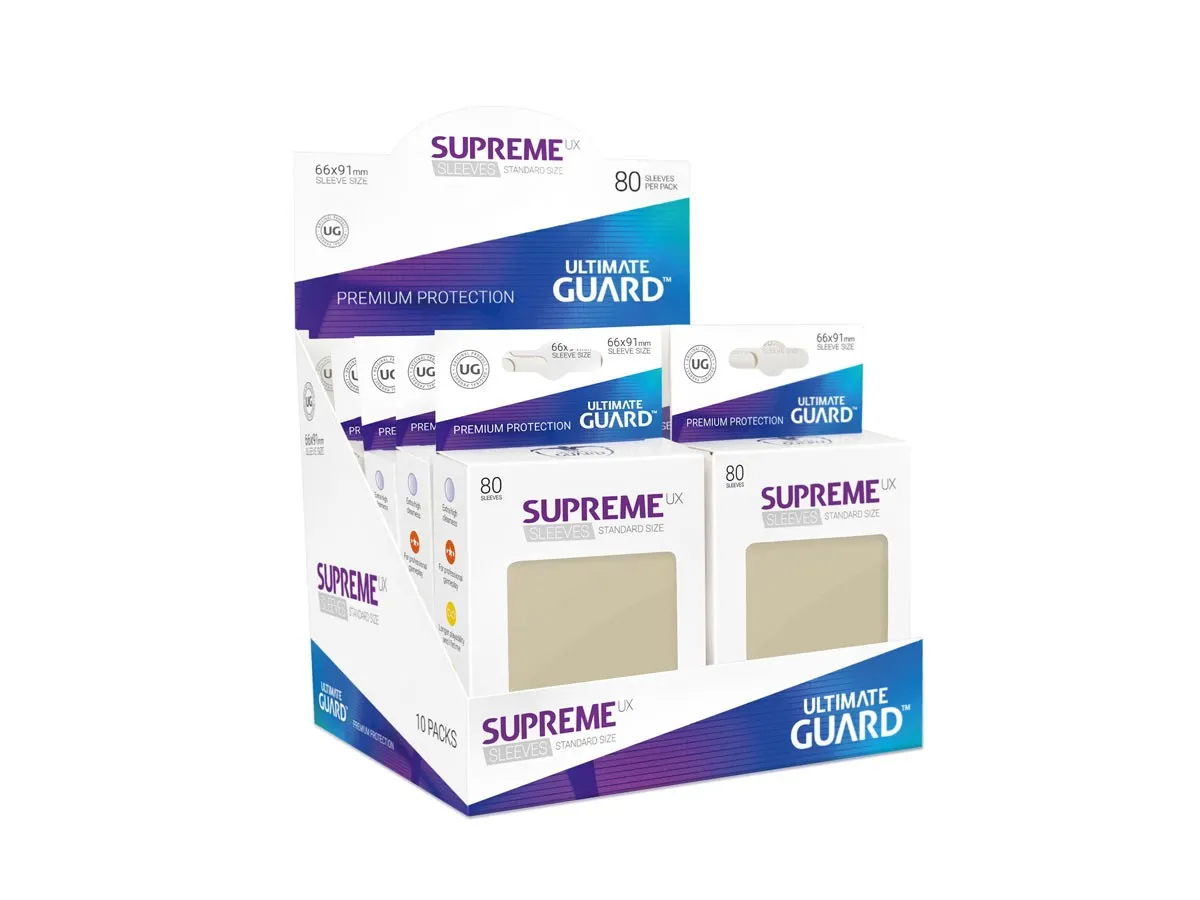 The supreme way to protect your standard sized gaming cards, like Magic the Gathering™, Pokemon™ and others. 80 sleeves per pack. 80 Sleeves standard size Optimized for the protection of a complete card deck with only one pack of sleeves. Ideal fitting and size Optimal fitted sleeves for a safe handling and a great playability of your cards. Acid free, no PVC This product is completely free of PVC and acidic materials and therefore ideal for collectible cards. Easy Shuffling The sleeve's surface material allows an easy shuffling of your card deck Prevents bent corners and scratches Keeps your most valued cards in a mint condition to preserve their value and usability. Longer playability and lifetime The extra durable material prolongs the lifetime of your cards and keeps them playable, even during heavy use. Extra high clearness The extra high clearness of the material ensures a genuine image quality with unaltered contrast and colors. For professional gameplay Low reflective surface and no holographic logos. Ideal for tournament use.