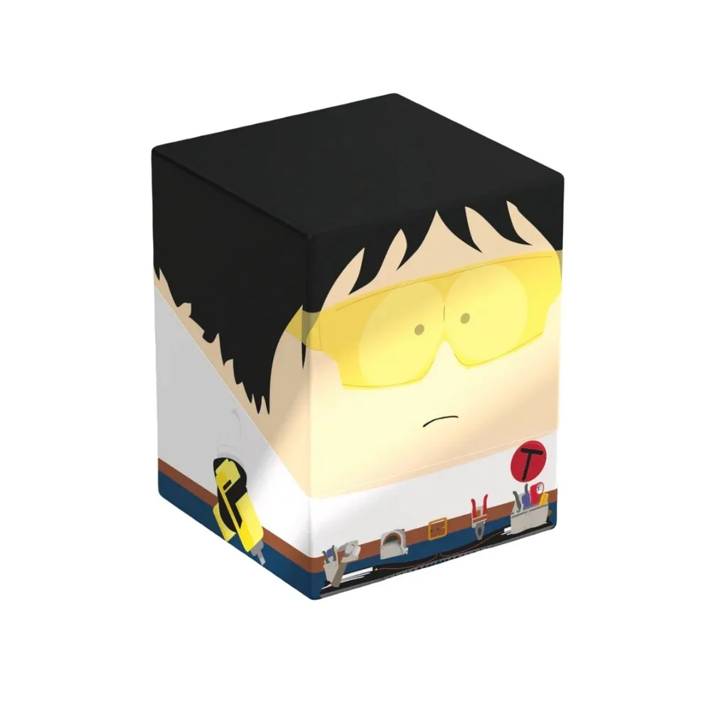 Collectible box for storing TCG decks, tabletop gaming accessories, and/or collectibles. The Toolshed Squaroe from the South Park edition holds up to 100 cards in double protective sleeves if used as a deck box.