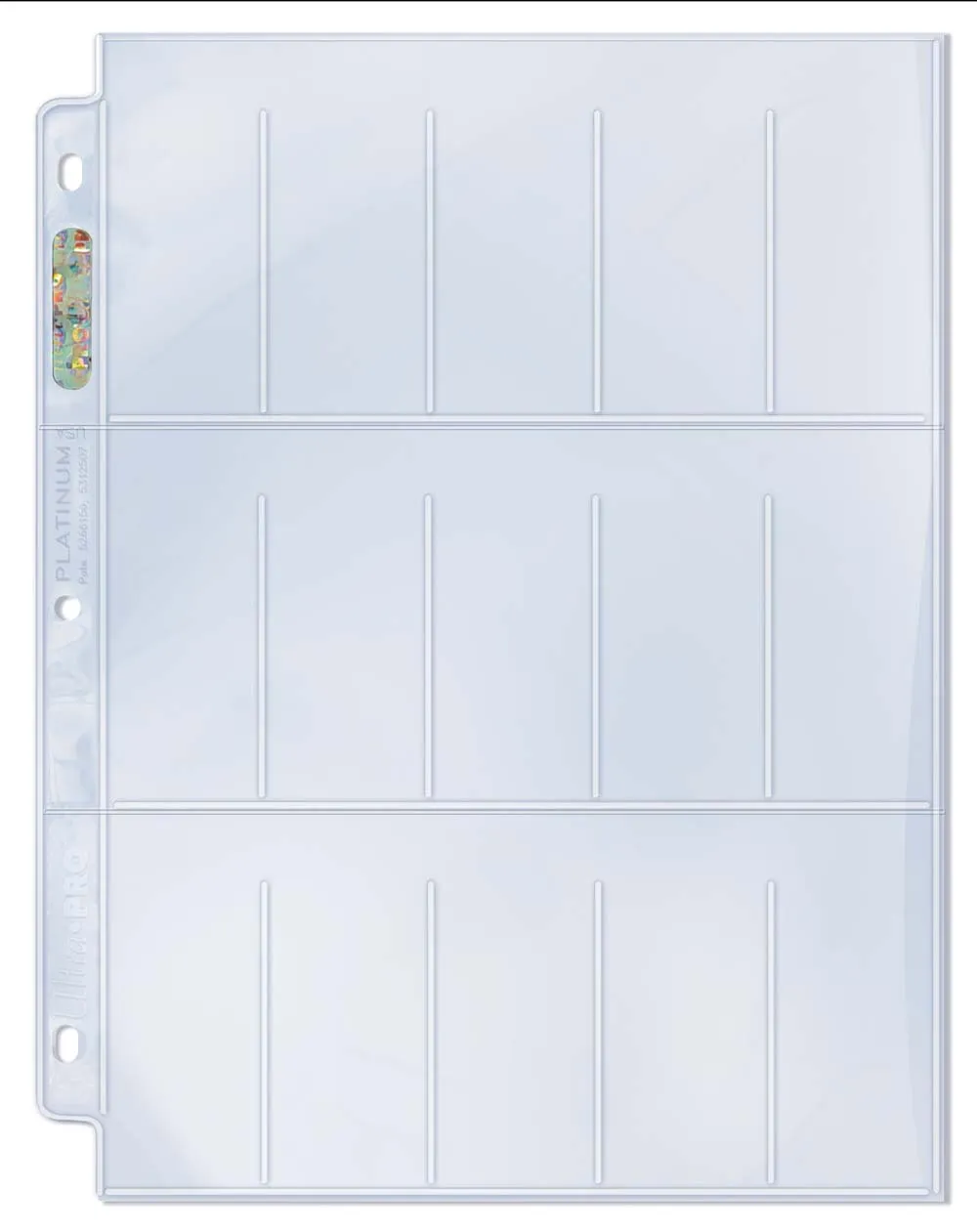 Ultra PRO Platinum Hologram Pages in fifteen-pocket style. Archival quality pages that holds tobacco-sized cards with 1-1/2" X 2-1/2" dimensions or smaller.