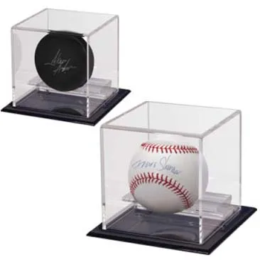 Proudly show off your prized memorabilia with this Z-Design display case, made with an ultra-clear acrylic top ideal for displaying a memorabilia baseball or puck. Bottom "Z" holder creates a 'floating' look for your display item. "Z" holder can be unscrewed to turn the holder into a toy, figurine or POP vinyl figure display case. Black base plate creates a minimalist look and provides space for labels or engraved nameplates. Inside dimension measures 4 inches in height, 3.75 inches in width and depth