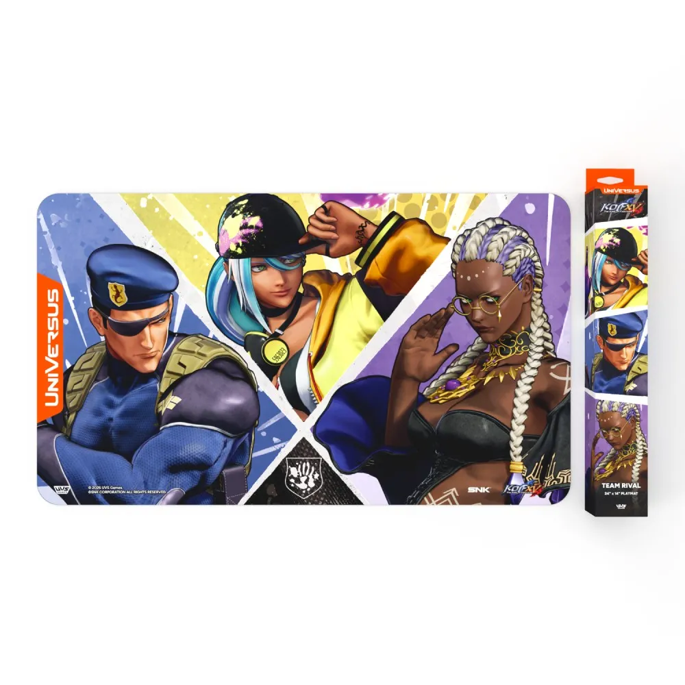 Represent Team Rival with a playmat featuring Dolores, Isla, and Heidern, releasing alongside The King of Fighters XV: Challenger Series.