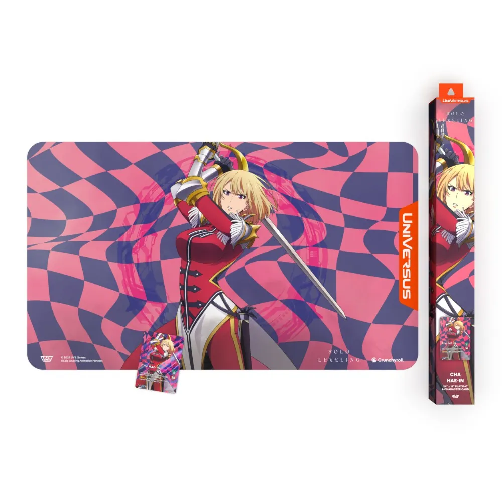 Step into the spotlight with the Cha Hae-In S-Rank Hunter Bundle. This elegant bundle features a character playmat and a character card featuring reskinned mechanics with art from an alternate universe inspired by one of Solo Leveling’s most skilled and beloved hunters. With art and design that capture Cha’s poise and strength, this bundle is a stunning addition for fans of the series and a great way to bring her presence into the UniVersus arena.