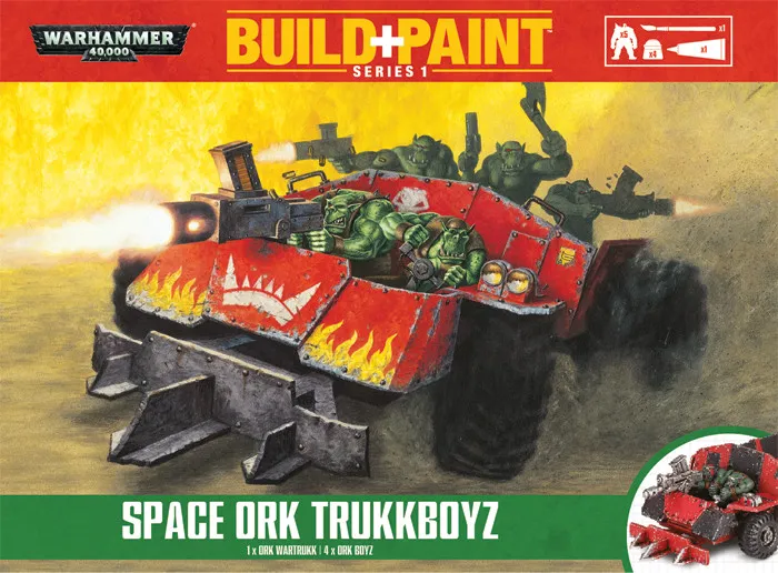The alien Orks of the far future are a persistent and deadly enemy of the human Imperium. The mainstay of the Ork armies or warbands are the Boyz - tough warriors who live for battle. They fight with sturdy guns or in close combat with big choppas. When the Ork war cry – the Waaagh! – rises, the Boyz take to their Trukks and speed manically towards the enemy, guns blazing! INCLUDES 1x Ork Wartrukk 4x Ork Boyz 1x Paintbrush 1x Plastic Glue 4x Citadel Paints 1x Sticker Sheet Requires assembly and painting.