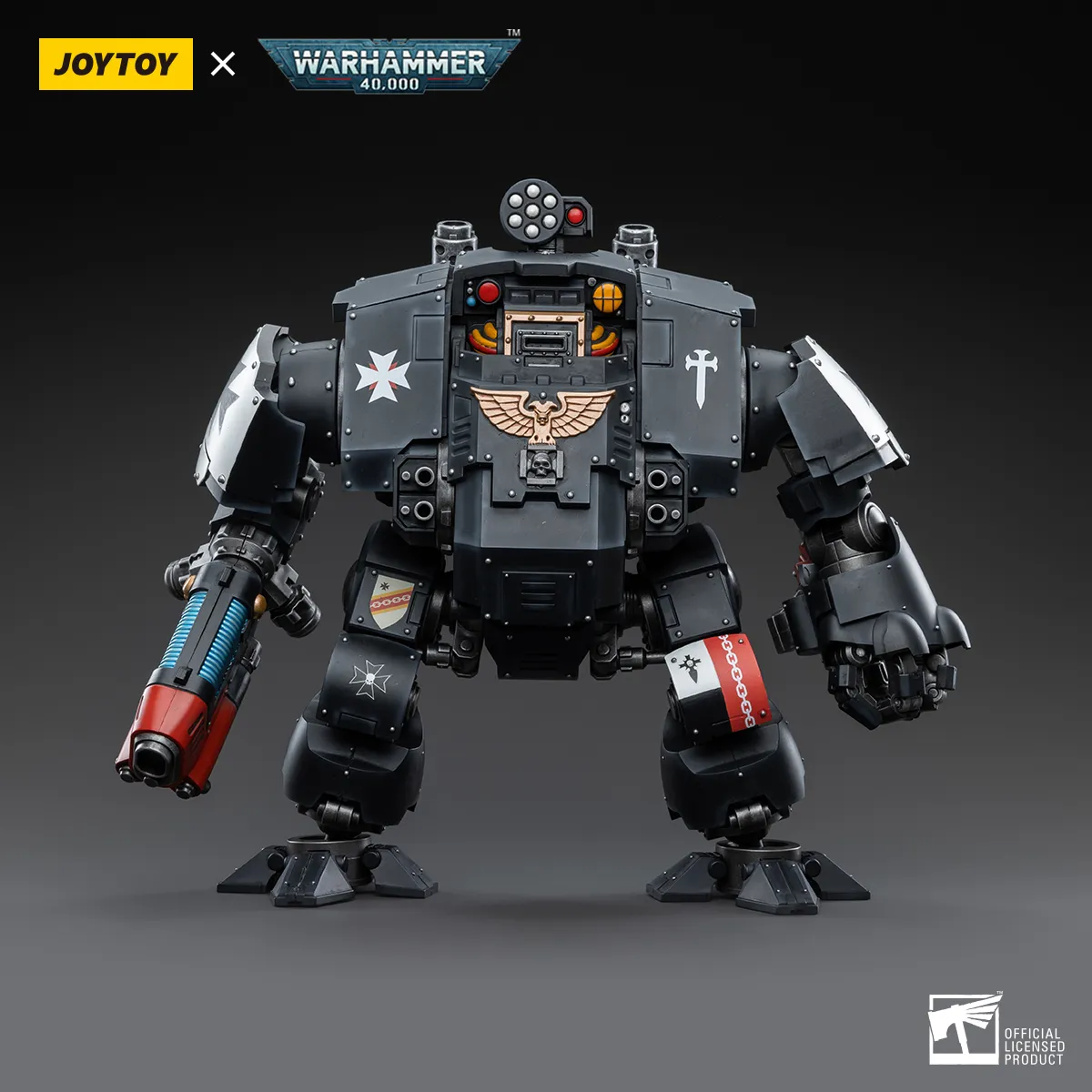 Joy Toy brings the Black Templars to life with this Warhammer 40K Black Templars Redemptor Dreadnought! The Black Templars view the Emperor of Mankind as a literal god and have launched a crusade to enforce his reign. Converting entire worlds with the might of their massive battle fleet, their firepower is a match for any other Space Marine Chapter.