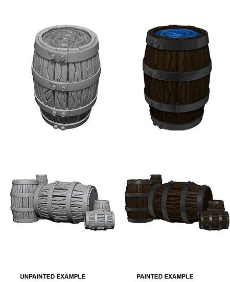 WizKids Deep Cuts come with highly detailed figures, primed and ready to paint out of the box. These fantastic miniatures include deep cuts for easier painting. The packaging displays these miniatures in a clear and visible format, so customers know exactly what they are getting. Key Features: Features characters, monsters, and scenery Little to no assembly required Primed and ready to paint Some miniatures include translucent parts The WizKids™ Deep Cuts™ Unpainted Miniatures: Barrel & Pile of Barrels includes 1 Barrel 1 PIle of Barrels 4 Barrel Caps Accessories (Not Pictured)