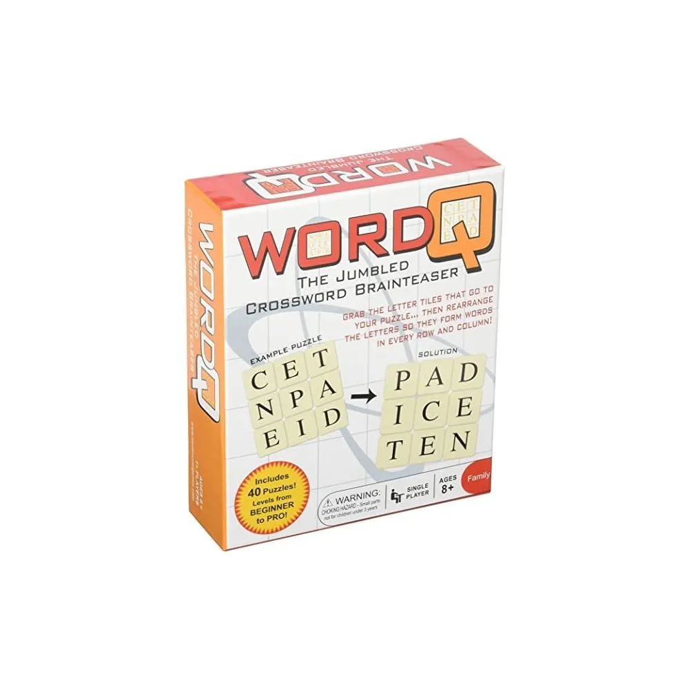 The jumbled crossword brainteaser! Choose a puzzle from the Word Q book and setup the letter tiles that are shown in the puzzle. Then, rearrange the letters in a grid-like configuration so they form words in every row and column.
